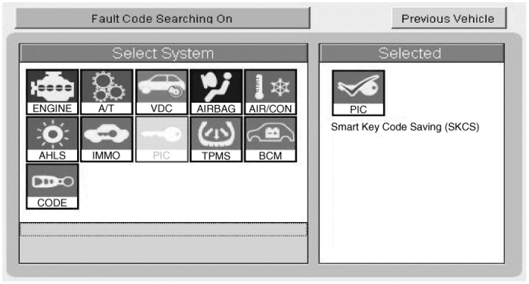 2. Select the vehicle model and then do "Smart key code saving".