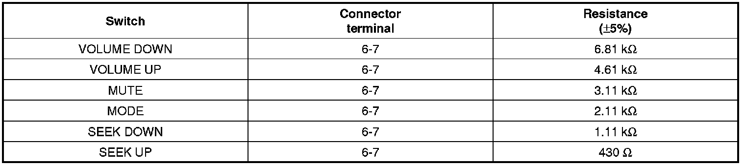 Check for resistance between No.6 and No.7 terminals in each switch position.