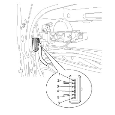 4. Check for continuity between the terminals in each switch position when inserting the key into the door according to the table.