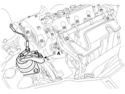 7. Disconnect the ground line and then remove the engine mounting bracket (A).