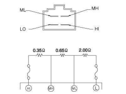 If measured resistance is not within specification, the blower resistor must be replaced. (After removing the resistor)