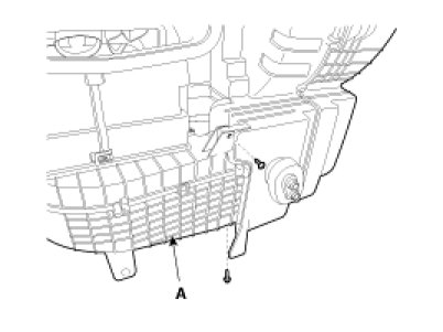 4. Remove the blower unit (A) from the heater unit (B) after loosening a mounting bolt and 3 screws.