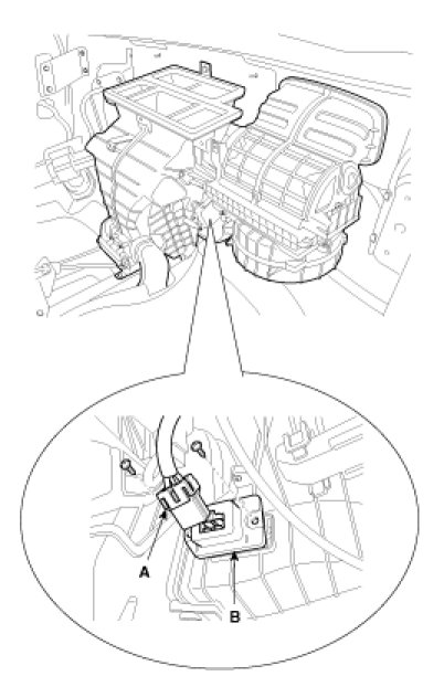 3. Disconnect the power mosfet connector (A) at the connecting part between heater and blower unit.