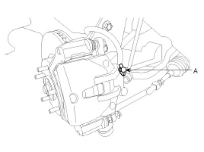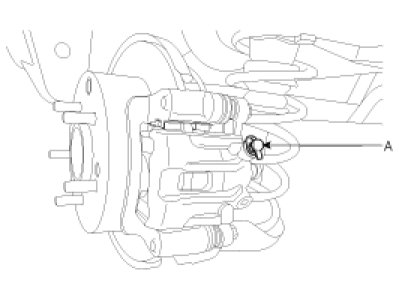 5. Pump the brake pedal several times, and then loosen the bleeder screw until fluid starts to run out without bubbles. Then close the bleeder screw(A).