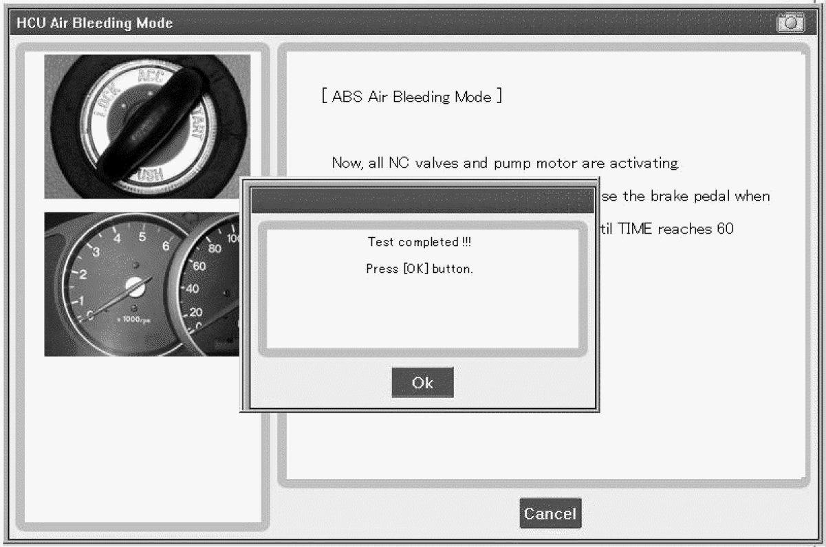 You must obey the maximum operating time of the ABS motor with the GDS to prevent the motor pump from burning.