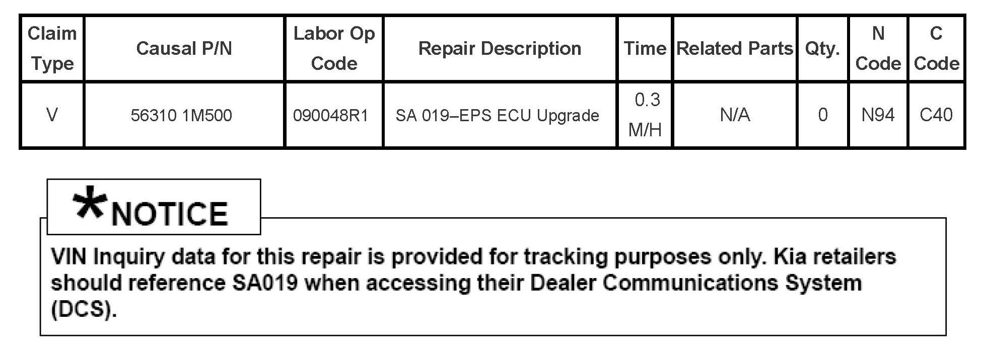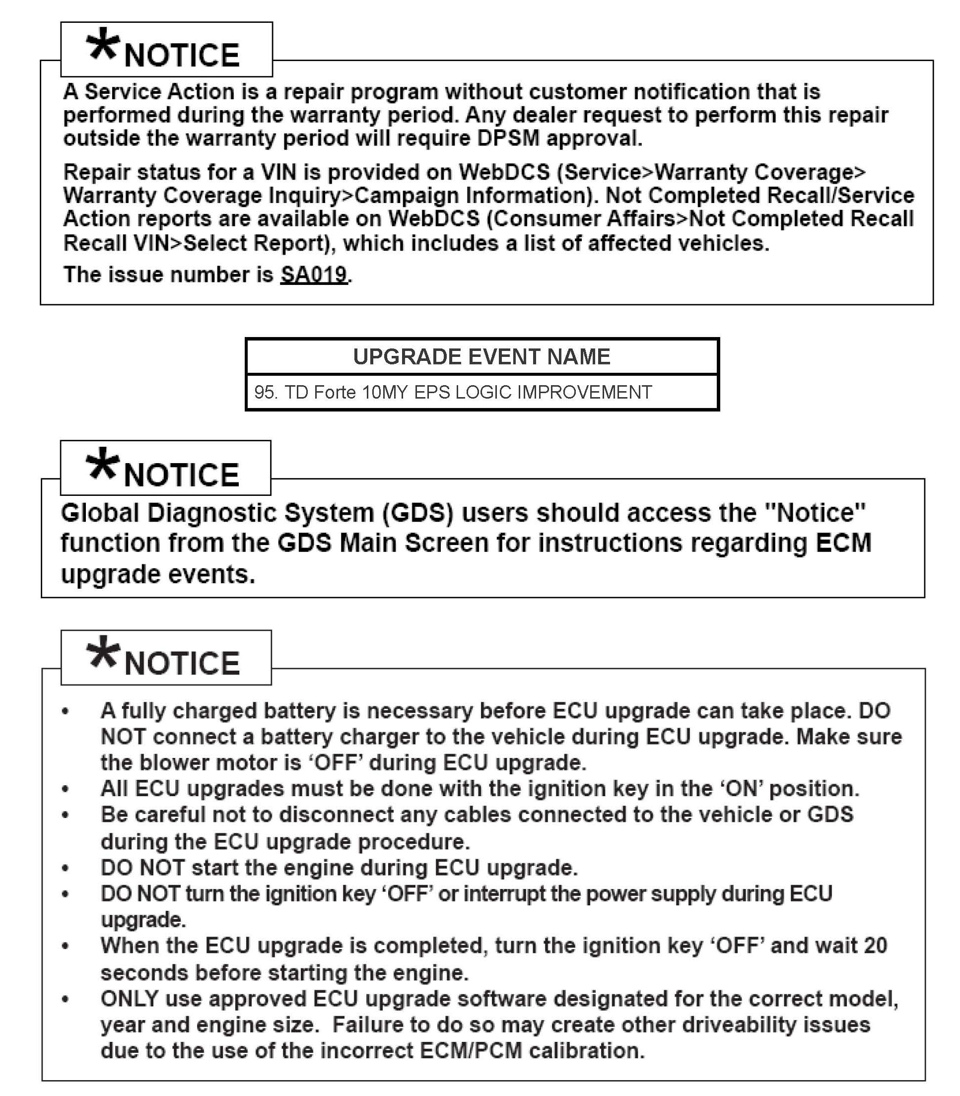 2010 Forte/Koup vehicles equipped MDPS produced prior to 8/19/2009.