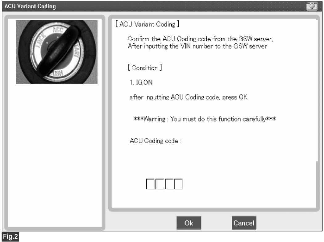 2. If the variant coding is failed, DTC B1762 (ACU Coding Error) will be displayed and the warning lamp will be turned on.