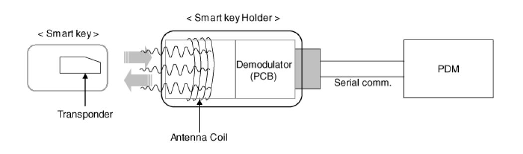 The transmitter, receiver and antennas required for the communication between the fob and the vehicle will differ depending on functionalities and regional areas.