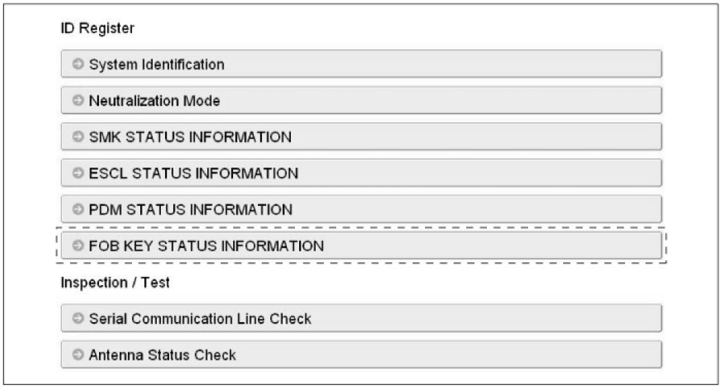 2. After IG ON, select the "FOB KEY STATUS INFO".