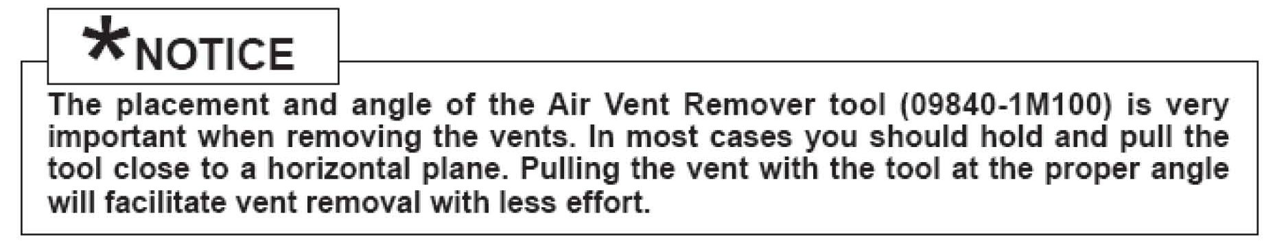 4. The Air Vent Remover (09840-1M100) should grasp the inside of the vent.