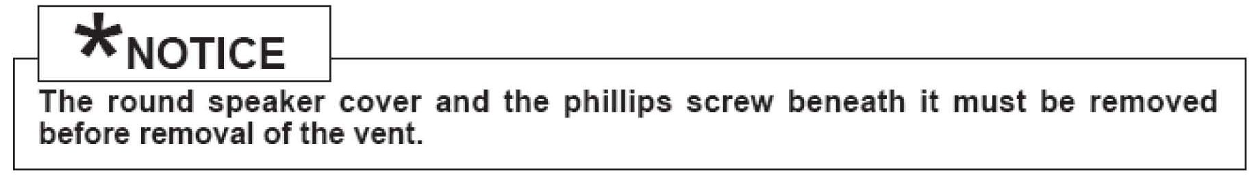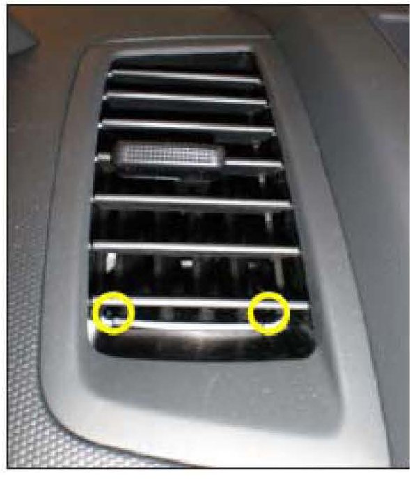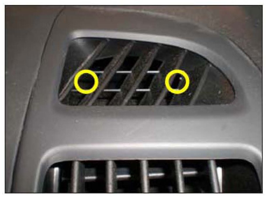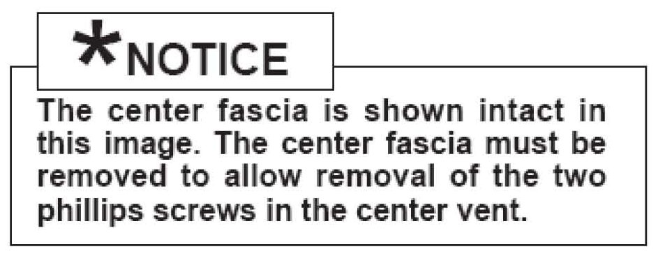 2. Remove two phillips screws beneath the center fascia that hold the vent in place.
