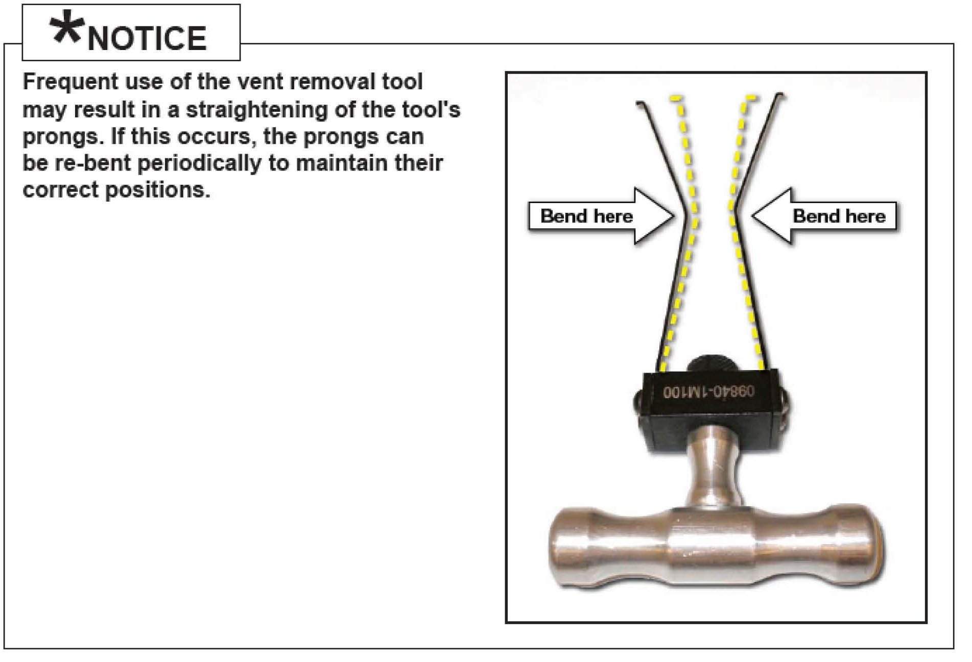 1. Insert the Air Vent Remover (09840-1M100) into the air vent as indicated by the circles.