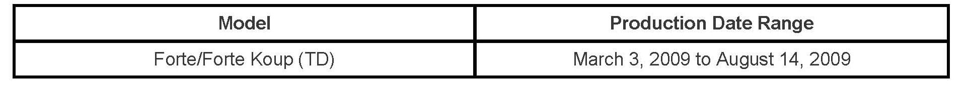 Some Forte/Forte Koup vehicles manufactured from March 3, 2009 (start of production) to August 14, 2009 with both GEN 1.0 and