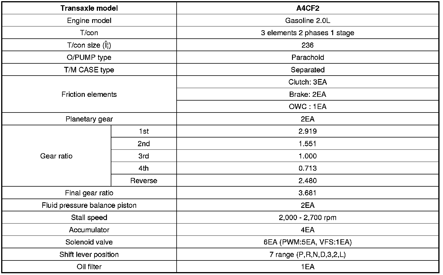 Specifications (A4CF2)