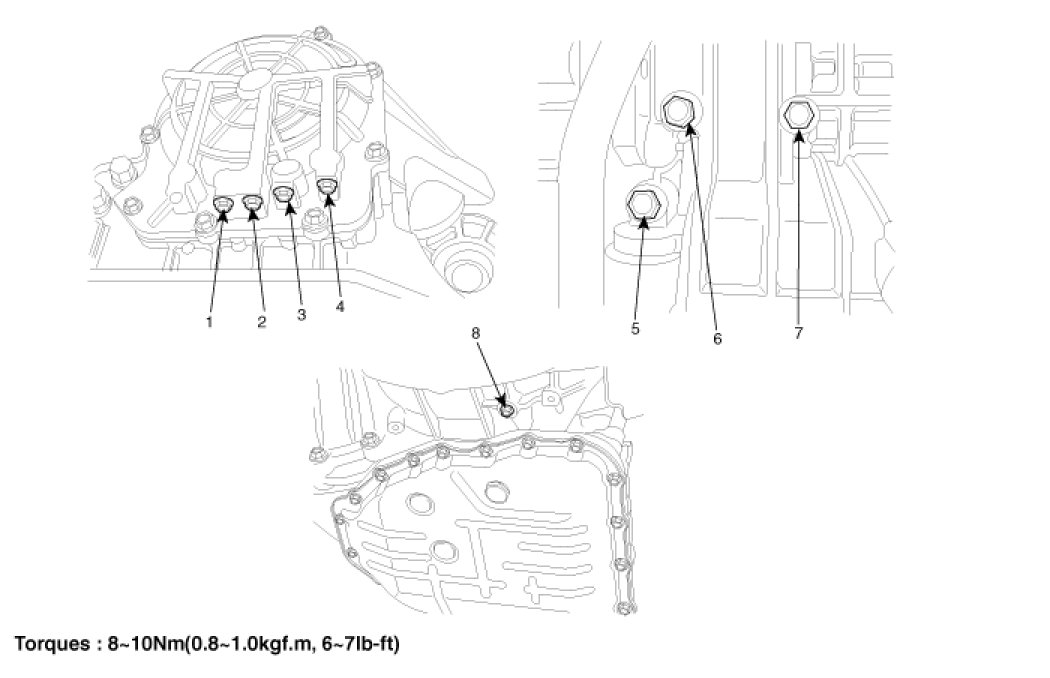 1. Disconnect the hose, which connects the transmission and the oil cooler (inside the radiator).