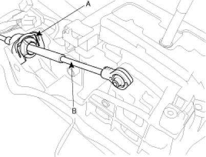 5. Install the shift cable assembly (B) by installing the clamp (A).