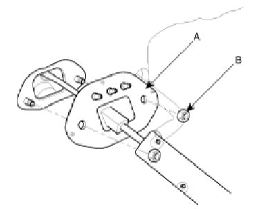 6. Remove the retainer (A) and nuts (B).