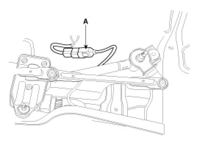 2. Disconnect the windshield deicer connector(A) from the wiper motor linkage.