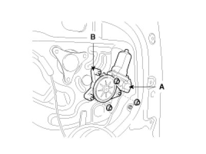 2. After disconnecting the connector (A), unbolt motor, remove the power window motor (B).