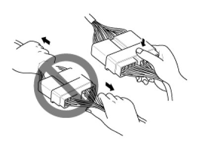 3. Slightly shake the connector and wiring harness vertically and horizontally.