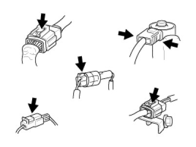 2. Inspect connector connection, and check terminal for poor connections, loose wires, bent, broken or corroded pins, and then verify that the connectors are always securely fastened.