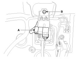 4. Tighten the bolt (B) securely in dash panel.