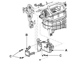 4. Remove the smart key unit (A) with bracket (B) after loosening the mounting nuts, shear bolts (C).