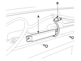 4. Remove the trunk open switch (A) from the trunk garnish after pressing the clips (B).