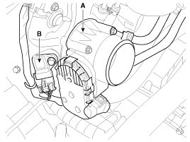 5. Remove the ETC (Electronic throttle control) module (A) and MAPS (Manifold absolute pressure sensor & IATS (Intake air temperature sensor) (B).