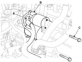 8. Remove the 2 bolts (C) holding the starter, then remove the starter.
