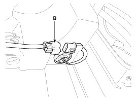 3. Remove the washer hose and disconnect the washer motor connector (A) and level sensor connector (B).