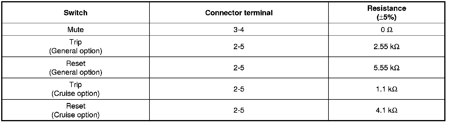 1. Check the audio remote control switch (A) for resistance between connector terminals in each switch position.