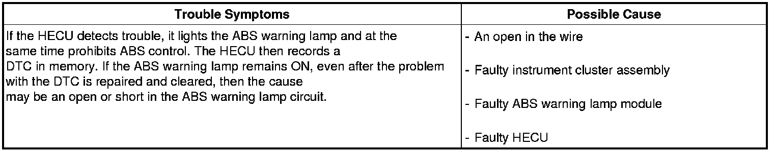 Check the power source for the ABS warning lamp