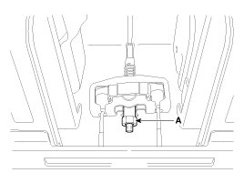 2. Adjust the adjusting nut(A) for parking brake pedal stoke 4 - 5 notches when operating effort is 196N(20kgf, 44lbf)
