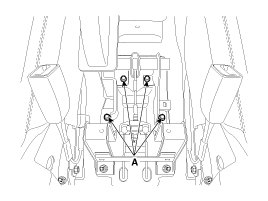 6. Remove the parking brake pedal mounting bolts (A) and nuts (B).