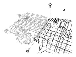 4. Remove the blower unit (A) from the heater unit after loosening a mounting bolt and screws.