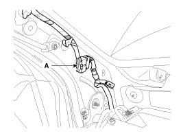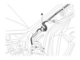 11. Remove the front pillar trim and then disconnect the connector (A).