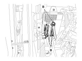 14. Disconnect the fuse box connector (B).