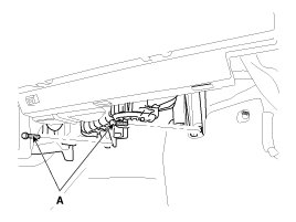 17. Disconnect the connectors and then remove the heater blower unit (A) from crash pad.