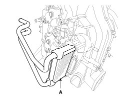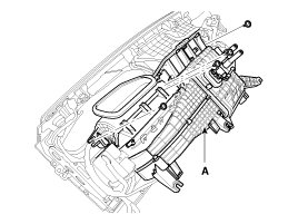 19. Loosen the mounting screw and then remove the heater core cover (A).