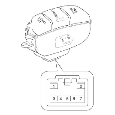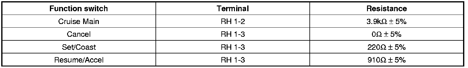 2. Measure resistance between terminals on the control switch when each function switch is ON (switch is depressed).