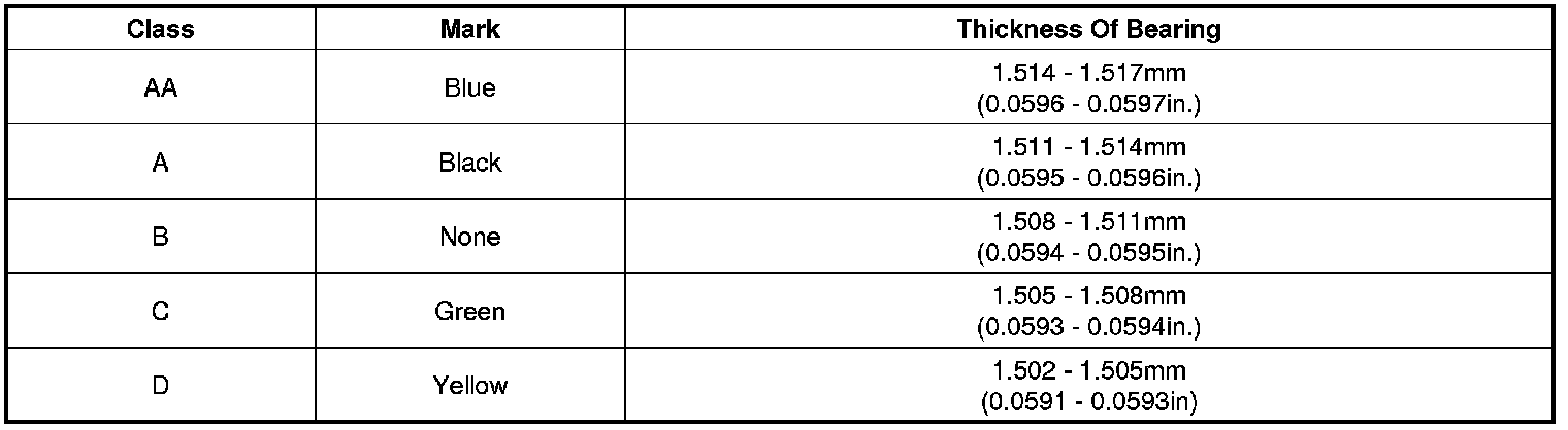 (7) If the plastigage shows the clearance is still incorrect, try the next larger or smaller bearing (the color listed above or below that one), and check clearance again.