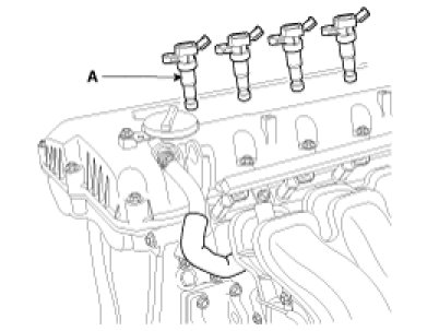 14. Remove the ignition coils (A).