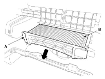 3. Remove the climate control air filter (A).