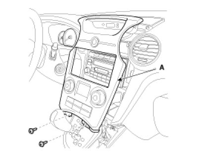 2. After loosening the mounting screw, then remove the center facia panel (A).