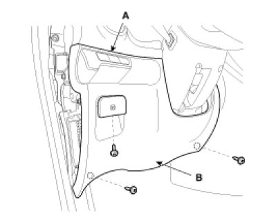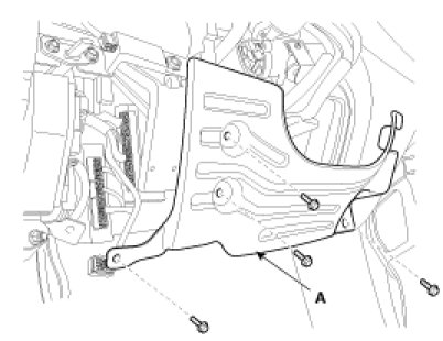 3. After loosening mounting bolts, then remove the reinforcing panel (A).