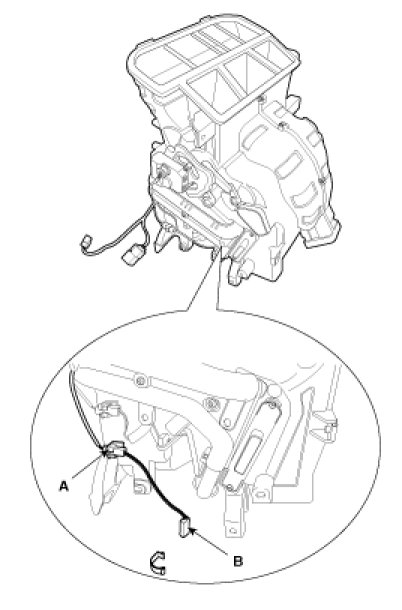 4. Disconnect the connector (A) of water temperature sensor and then remove the water temperature sensor(B) by pulling out.