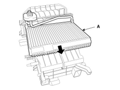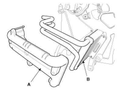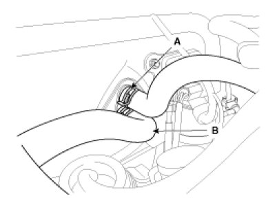 5. Disconnect the inlet (A) and outlet (B) heater hoses from the heater unit.