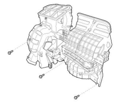 9. Remove the heater & blower unit after loosening 3 mounting bolts.