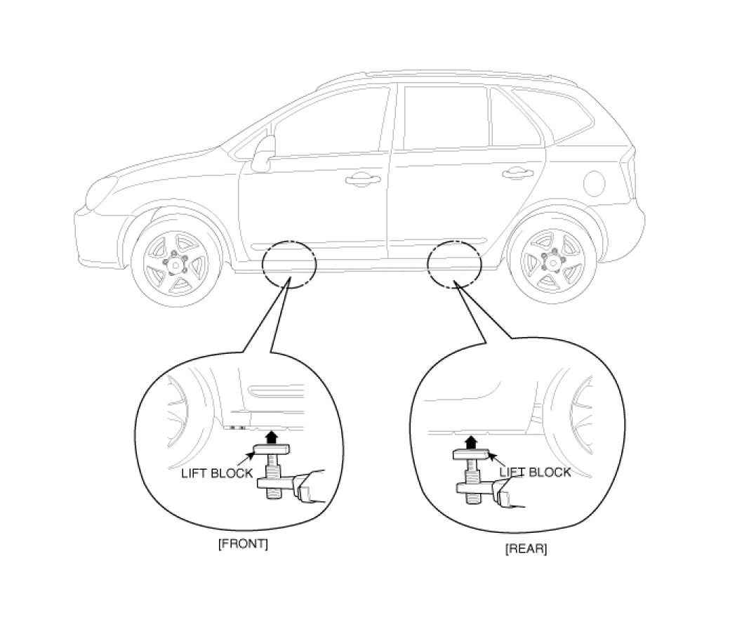 2. Raise the hoist a few inches (centimeters) and rock the vehicle to be sure it is firmly supported.